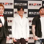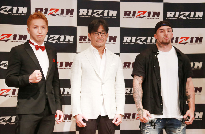会見に出席した久保優太(左)、木村”フィリップ”ミノル(右)、RIZIN榊原信行CEO(中央)
