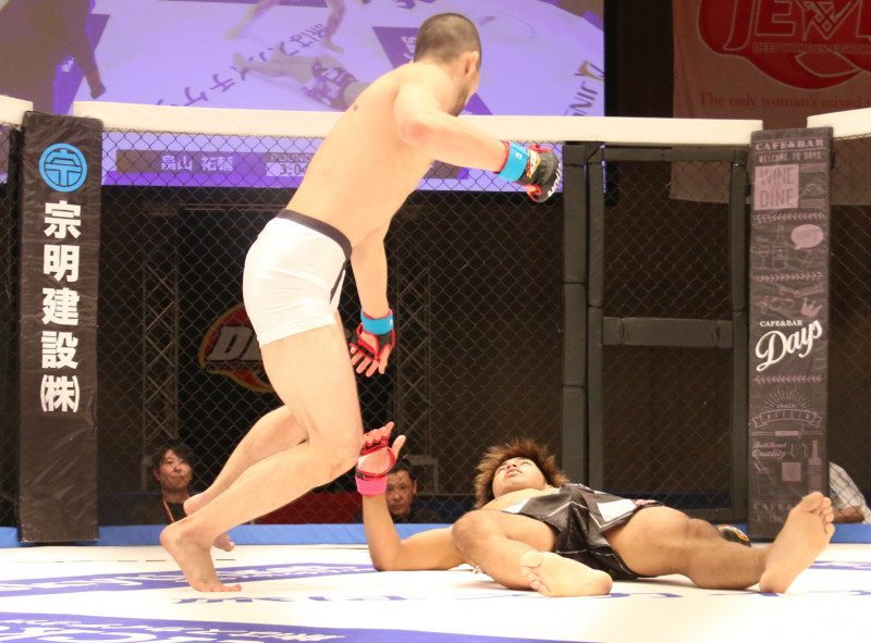 畠山は仰向けに倒れる