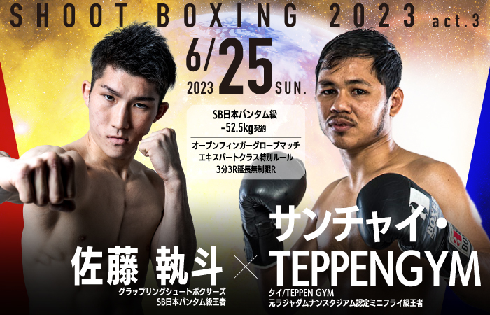 佐藤執斗(左)とサンチャイ・TEPPENGYM(右)がOFGで対戦する。