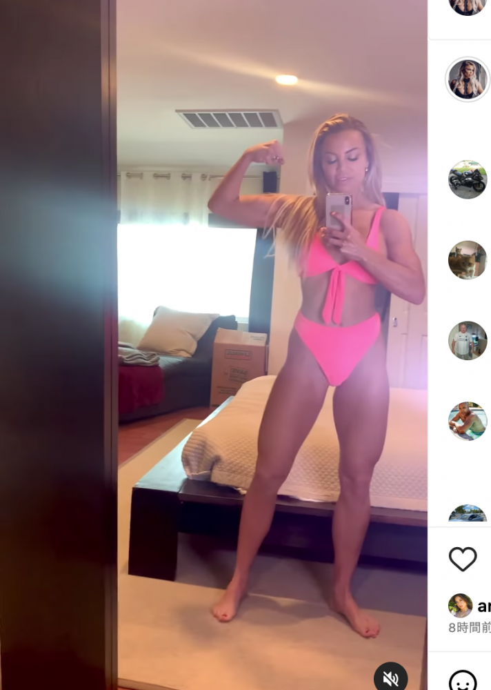 ピンクのビキニ姿でマッスルポーズ@laurendrainfitより