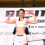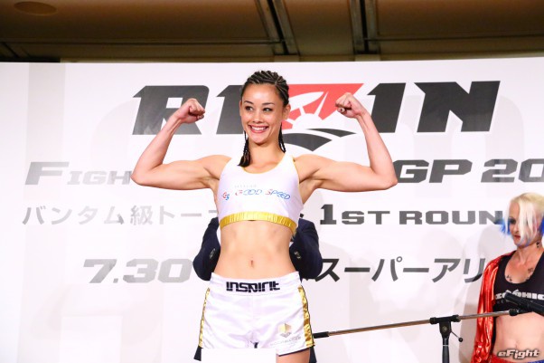 笑顔で計量パス、マッスルポーズの真珠