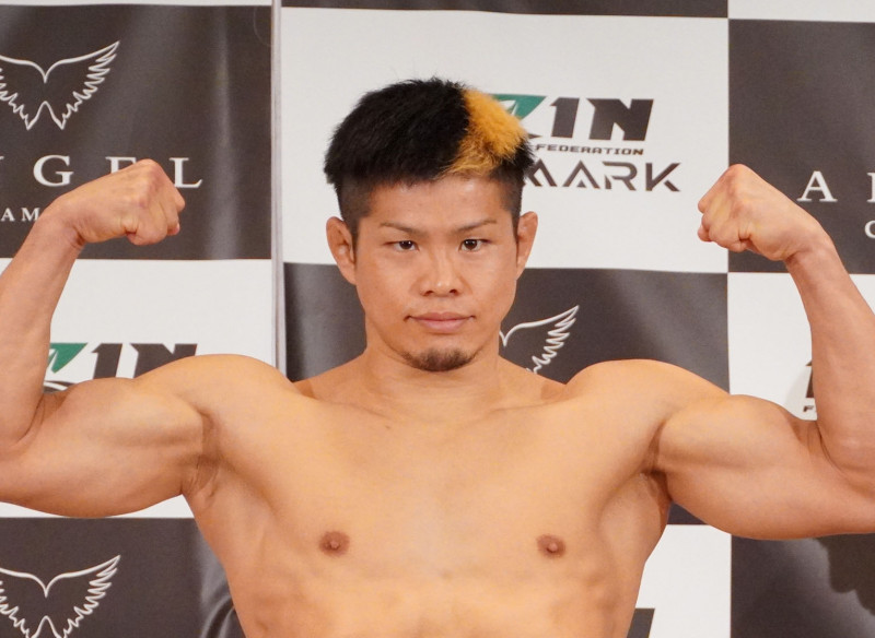 鈴木博昭が前回の計量のマッスルボディ!、今回はそれよりもマッスル度が増した感じだ。(写真は昨年11月の青井人戦)