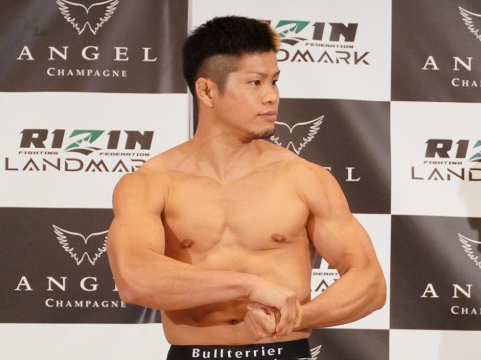 筋肉をアピールする鈴木(昨年11月の青井人戦)