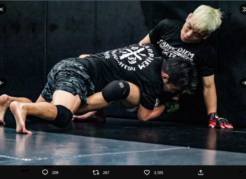 テイクダウンを奪いにいく皇治(皇治インスタグラムより)