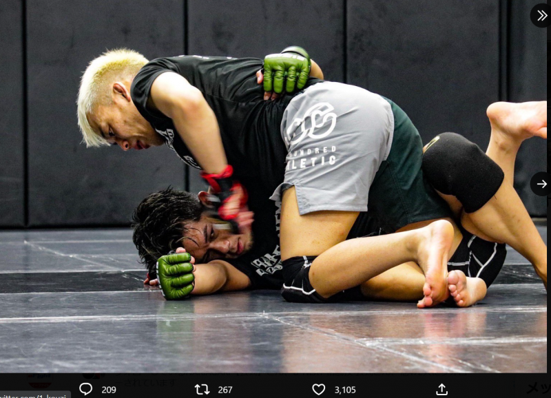 皇治(下)はカルペディエム三田で柔術家の竹浦正起(上)から寝技を習っている