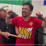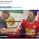 ロペス(右)が世界戦目前に謎の棒で鍛錬 (c)getty