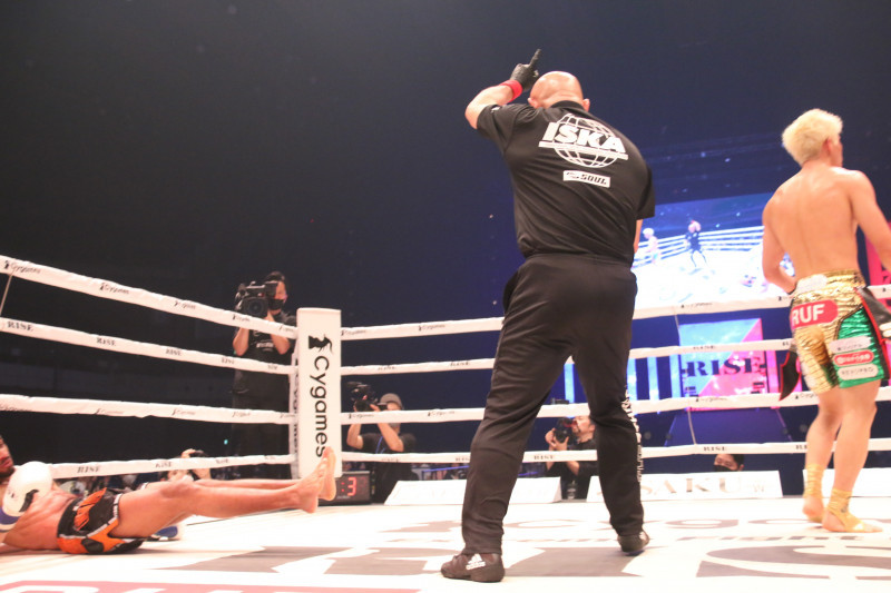 原口は左ハイキックを決めてダウンを奪った(2023年3月)