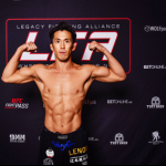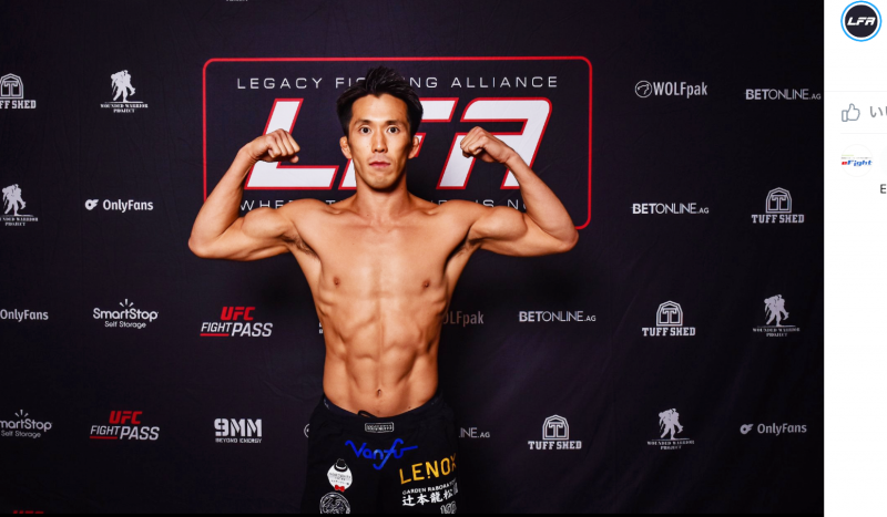 昨年8月の田中の計量写真、くっきり割れた腹筋でマッスルポーズ!@LFAfightingより