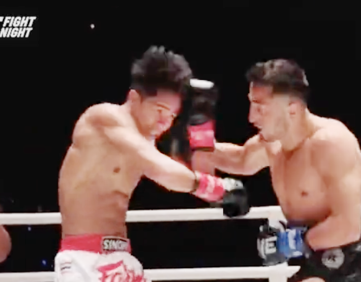 2、アゴに被弾やや身体持っていかれながら(C)ONE