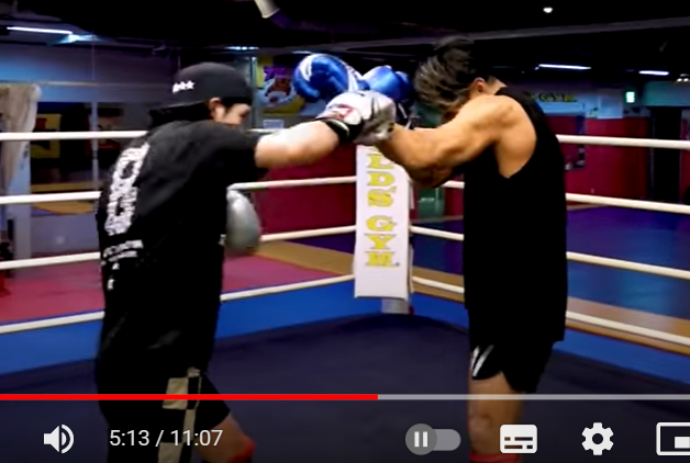 魔裟斗は相手のパンチをアームブロック(魔裟斗チャンネル)