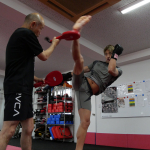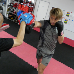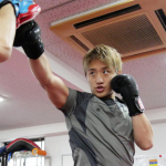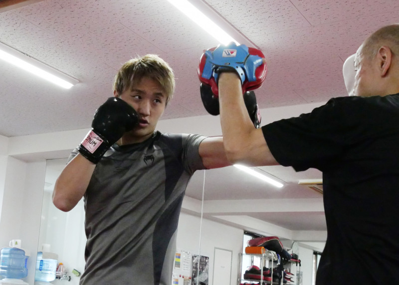 ミットにパンチを打ち込む南原