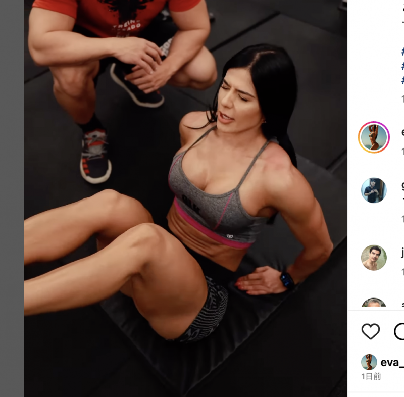 V時腹筋、両手は腰の辺りの床につける(@eva_andressaより)