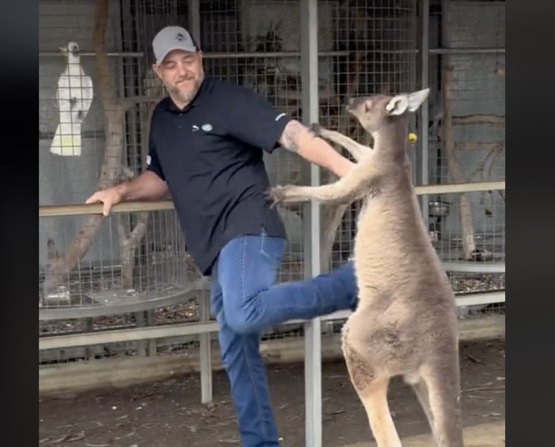 ミドルキックでで応戦する男性(@brooke.so.hipより)