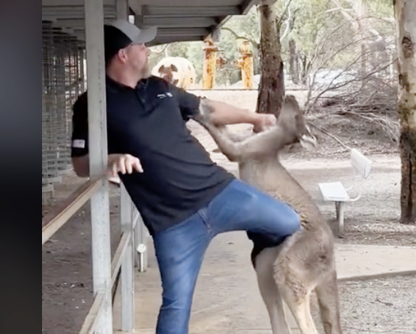 カンガルーにパンチとミドル!それでも襲いかかってくるカンガルー(@brooke.so.hipより)