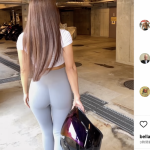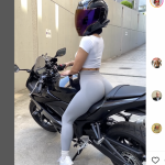 レギンスでバイクにまたがるダンシー(@azusadancy)