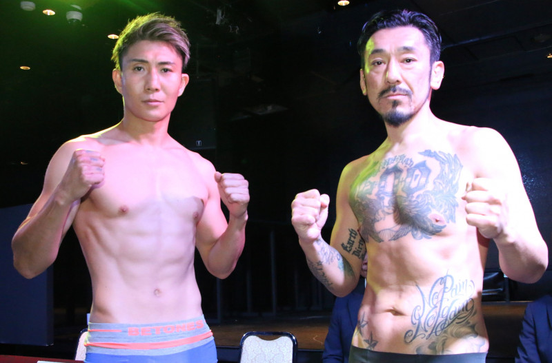 Bigbangスーパーウェルター級王座防衛戦に臨むジョージ(左)と挑戦者の藤村(C)Bigbang