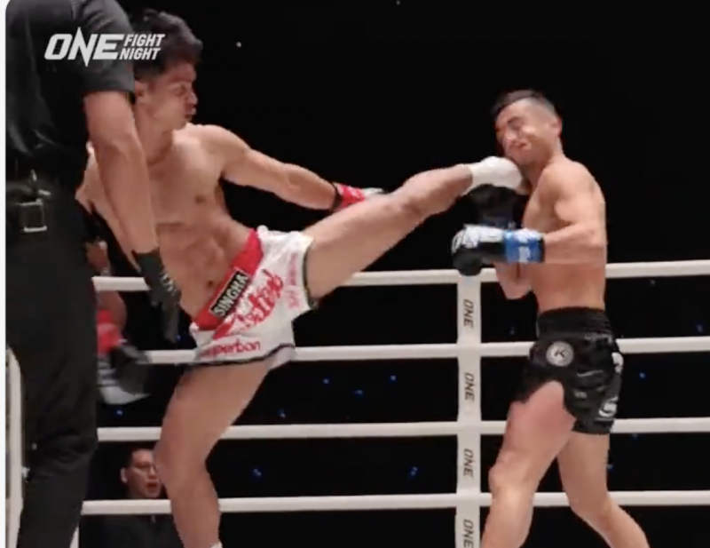 今月11日、欧州強豪オズカン を失神KOさせたスーパーボンの”神業”ハイキック!©️ONE