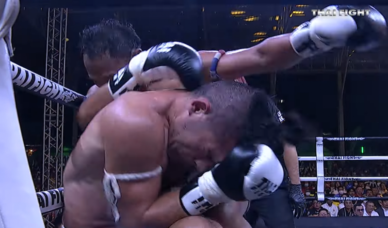 強烈なヒザで2度目のダウンを奪う! @ThaifightOfficial