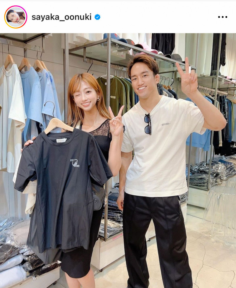朝倉海(右)のショップを訪れた大貫彩香(@sayaka_oonukiより)