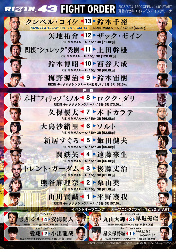 『RIZIN.43』の試合順