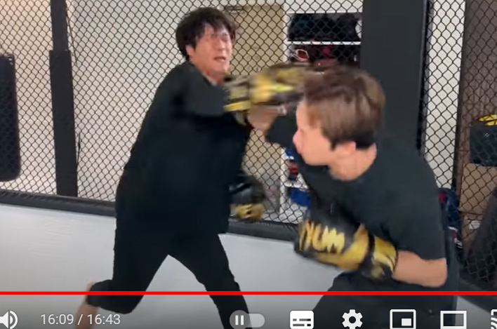 ヤマカワのパンチに右のカウンターを合わせてダウンを奪う朝倉(『朝倉未来』YouTubeチャンネル)
