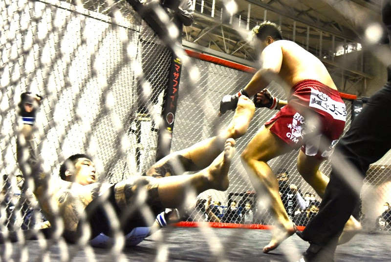 倒した直後、上田がパウンド攻撃でTKO勝利(2022年12月ソン・ムジェ戦)