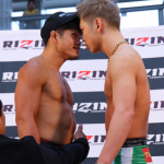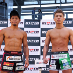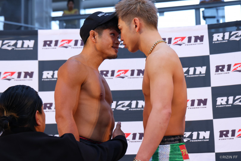 フェイスオフで額を突き合わせバチバチに睨み合う鈴木(左)と西谷