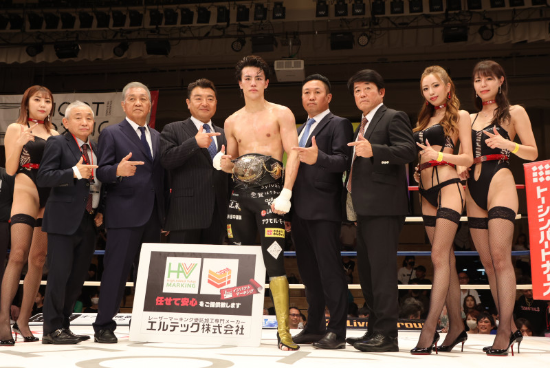 メインで海人が勝利し世界王者に、ラウンドガールも華を添える