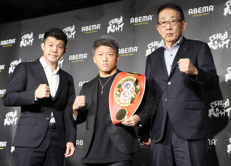 亀田興毅ファウンダー(左)、重岡銀次朗(中央)、渡辺均会長(右)
