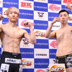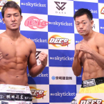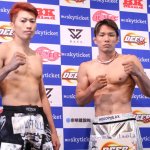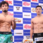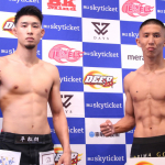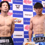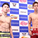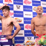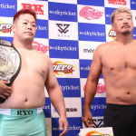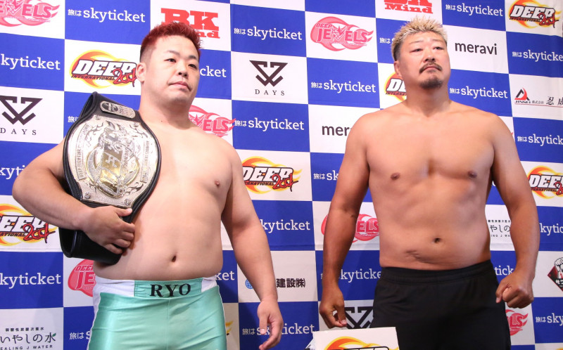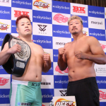 メインイベントでメガトン級タイトルマッチを行う王者の酒井(左)と挑戦者の水野(右)