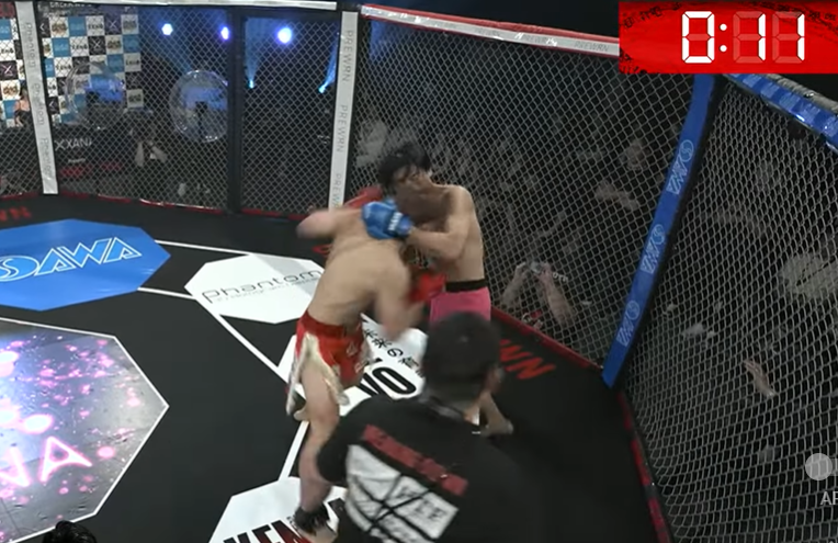 ラスト11秒、YURA(左)の左ショートがホンデの顔面を直撃 @朝倉未来チャンネル