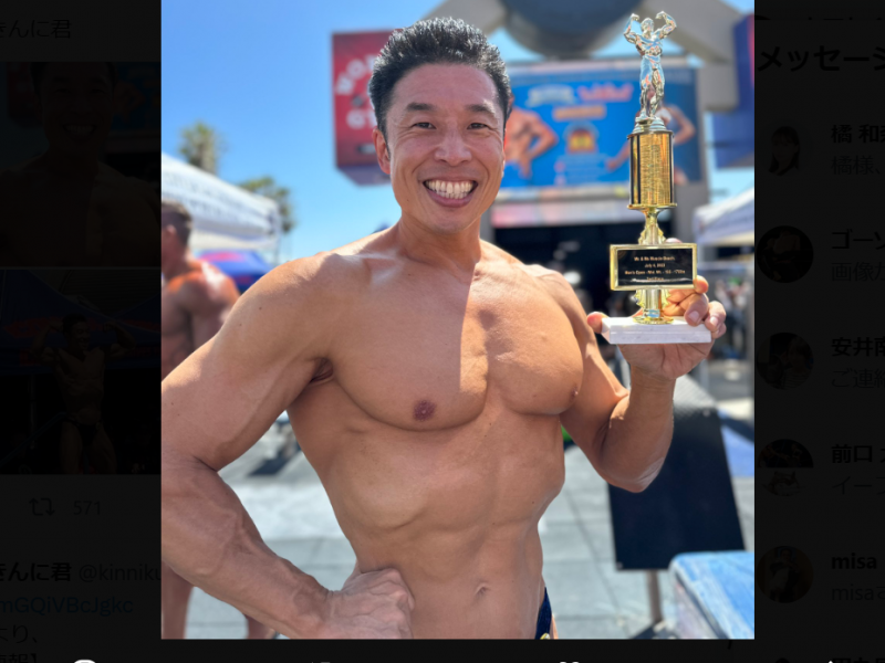 米ボディビル大会で準優勝に輝いたきんに君は、自身のYouTubeチャンネルで結果を報告した(@kinnikun0917)