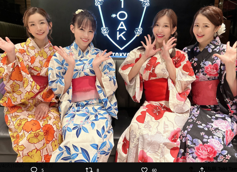 浴衣姿のラウンドガール4人(左から山口梓、加奈、COCO、澤田実架、@a_____sa80)