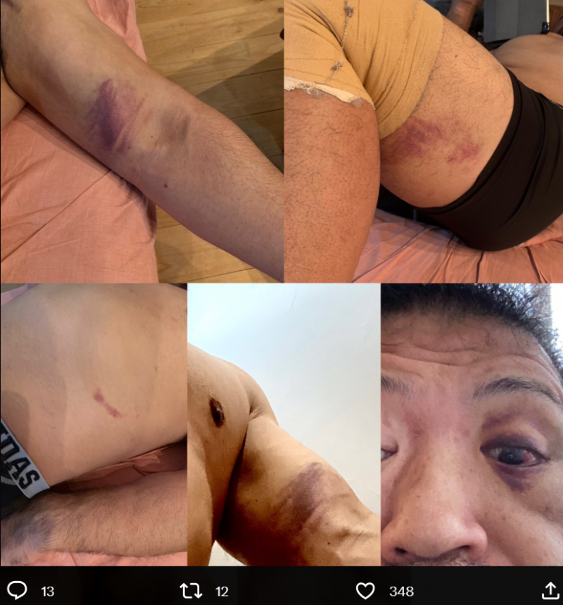 関根は打撲アザも公開した(@shrekbonsai)