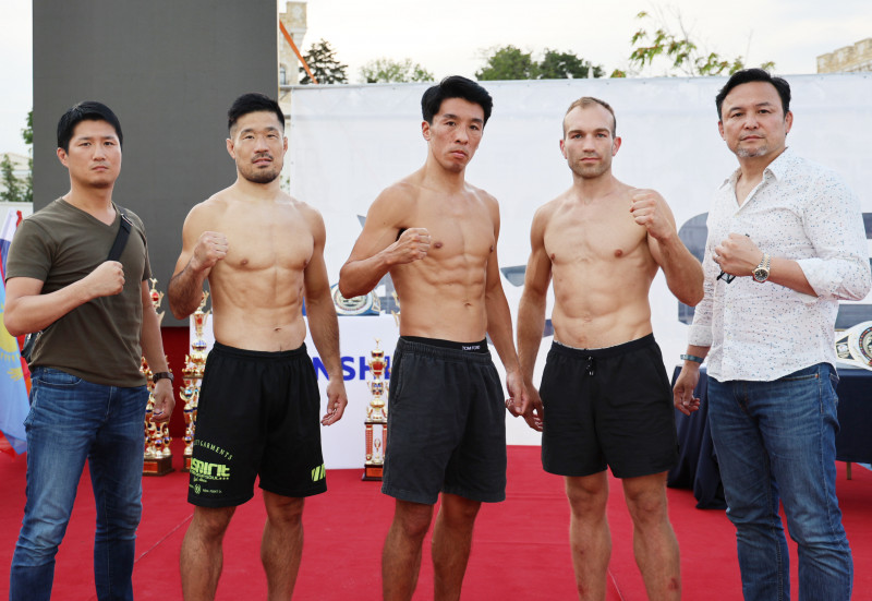 左から青津潤平、T-98、廣野、サモ・ペティ、RISE伊藤会長