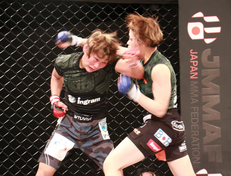 ライカ(左)が真っ向勝負の打ち合い(渡邉史佳との一戦)
