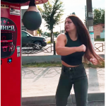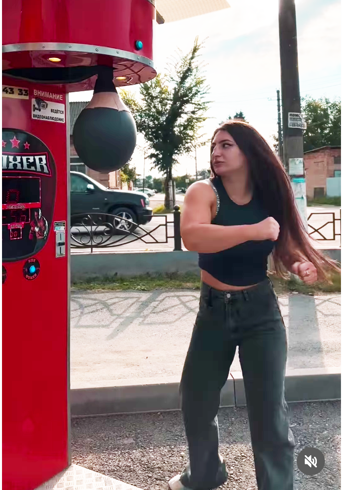 街角のパンチングマシーンに豪快パンチを放つ@likajojuaより