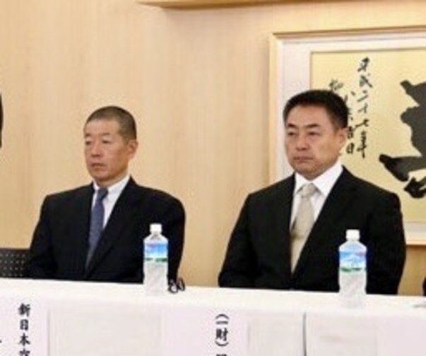 極真 松井館長と会見に出席する正道会館館長代行時代の中本代表=15年