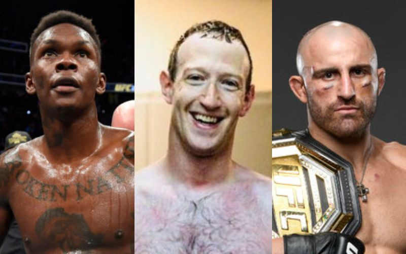 左からアデサンヤ、ザッカーバーグ、ヴォルカノフスキー Getty Images @zuck (c)Jeff Bottari/Zuffa LLC/UFC