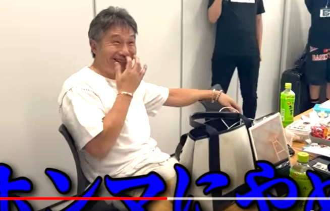 畑山は突然のノッコンの失礼な態度に笑みを見せるが、ボディブローを打つ時はマジモードに(『ノッコン寺田』YouTubeチャンネル)