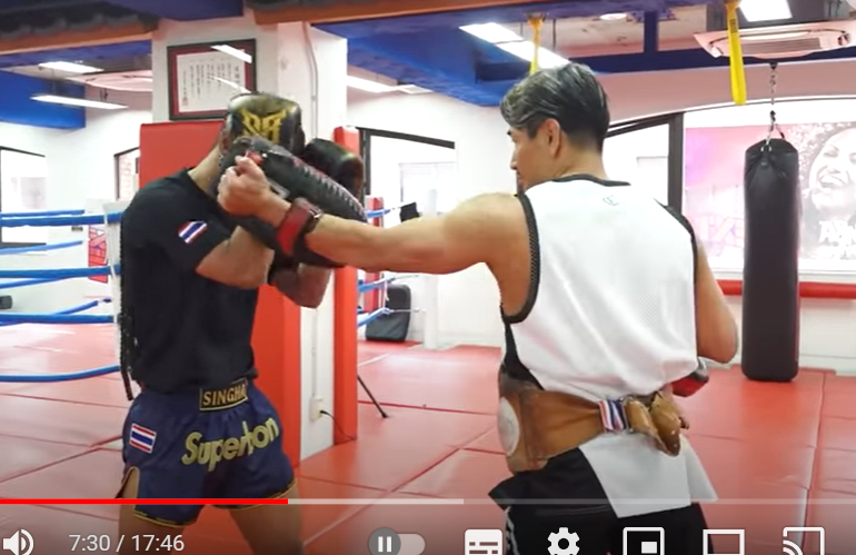 魔裟斗は左のパンチをスーパーボンに放つ(『魔裟斗チャンネル』)