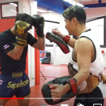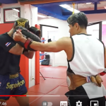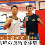 魔裟斗が左のパンチを放つタイミングで高速ハイキックが襲い掛かる(『魔裟斗チャンネル』)