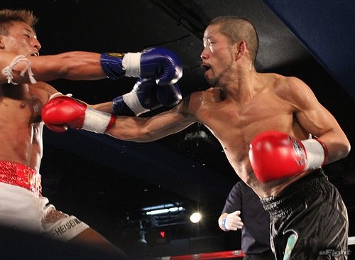 K-1で活躍した平山迅(左)にキックルールで勝利する郷野=15年
