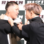 会見では乱闘騒ぎとなった伊藤(左)とヒロヤ(右)