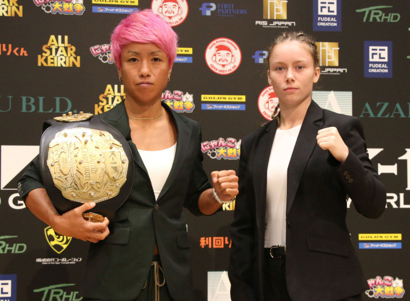 ベルトを持つKANAと、挑戦者ウェイドが並ぶ
