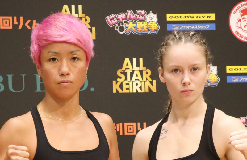 計量パスした女王KANA(左)と、挑戦者ウェイド