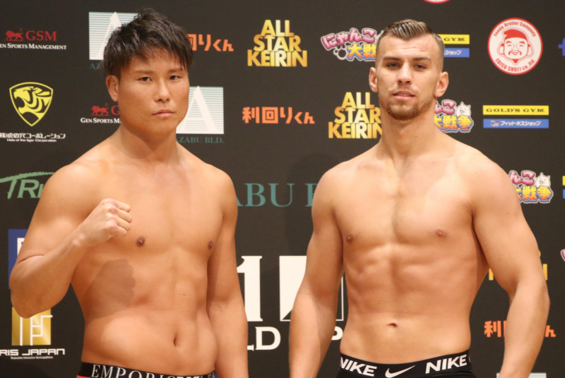 K-Jee(左)とステファン・ラテスクがともに計量をパスした