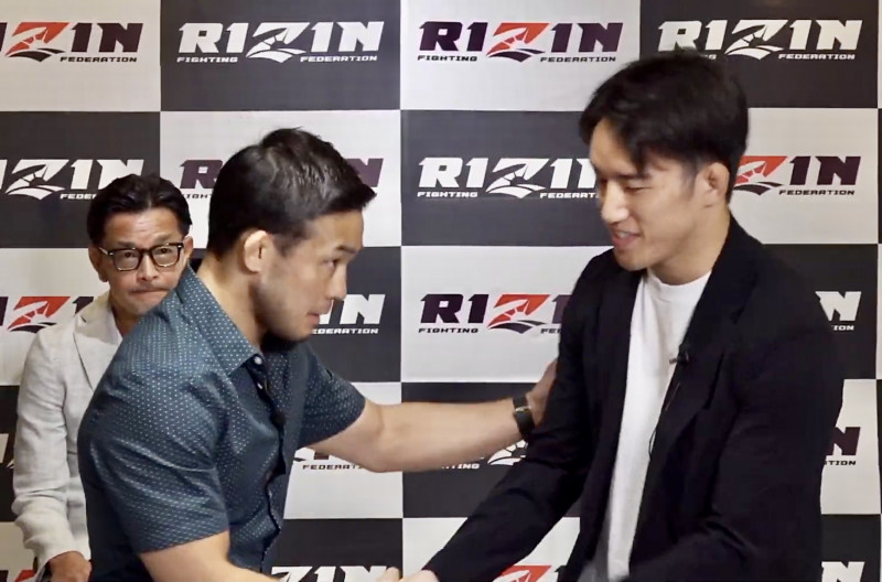 海(右)から”バトン”を受け取った扇久保 RIZIN FF YOUTUBE より