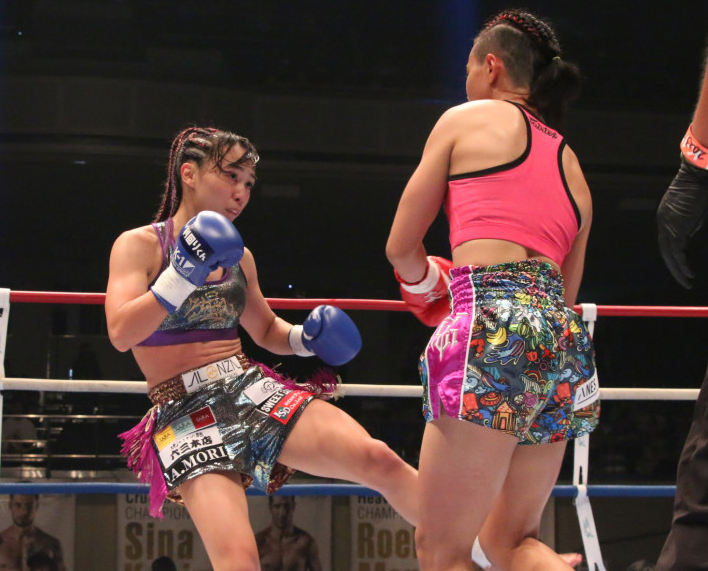 松谷がローキックを放つ