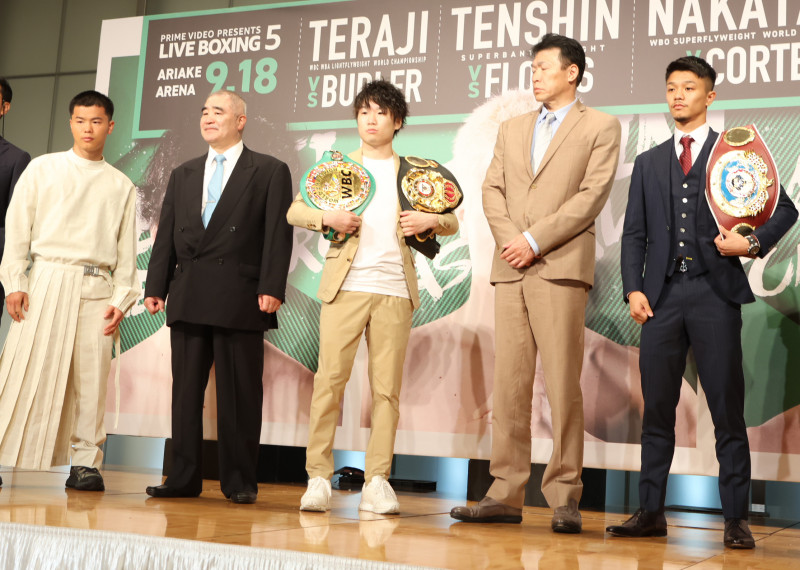 メインの寺地、セミの中谷とともに会見に出席した那須川